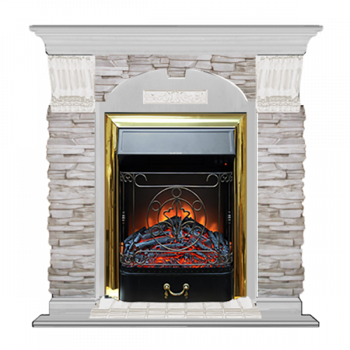 Каминокомплект Glenrich Арочный Мисхор (беленый дуб)+Majestic Brass